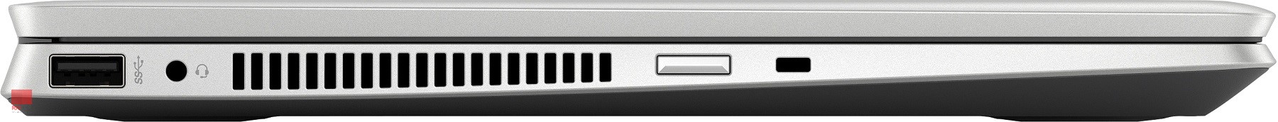 در سمت چپ، میتوانید دو پورت USB Type-A 3.1 (Gen. 1)، یک جک صدا و دکمه روشن/خاموش را پیدا کنید.