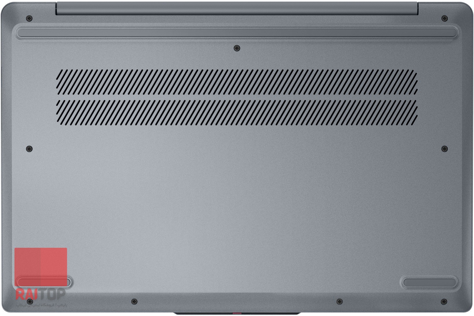 با نگاهی به بخش زیرین دستگاه، سه پایه لاستیکی برای ثبات بهتر روی سطح و یک دریچه تهویه با اندازه مناسب به چشم میخورد. هوای گرم تولیدشده توسط سیستم خنککننده از طریق دریچهای که بین بدنه و لولا قرار گرفته، به بیرون هدایت میشود. به همین دلیل، در زمان وارد شدن فشار سنگین به پردازنده، قسمت پایینی نمایشگر کمی گرم میشود که در لپتاپهای باریک و اقتصادی، رفتاری قابل انتظار است.